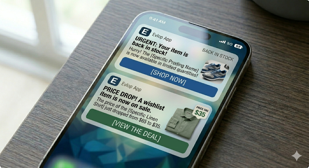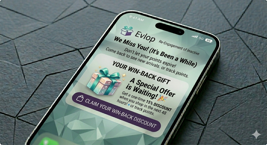 Because push notifications land directly on their phone, even users who’ve ignored emails might respond. At Evlop, many brands find that sending a personalized offer or showcasing new arrivals to inactive users can effectively bring them back.