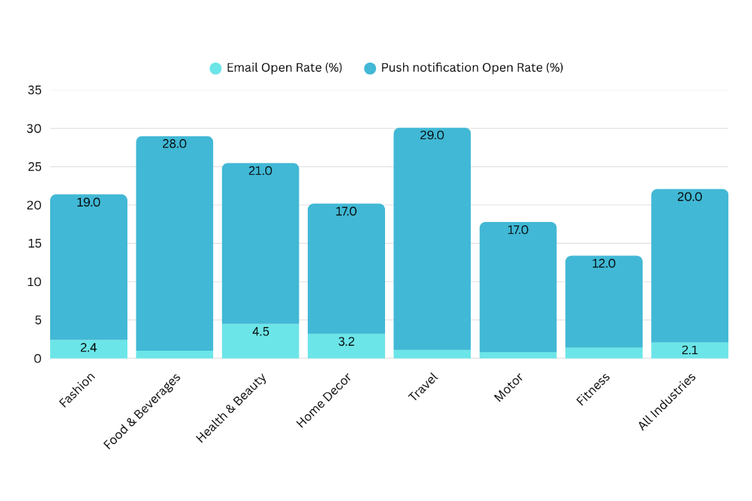 When it comes to view and response rates, push notifications outperform other channels by a wide margin. Unlike emails that can land in spam or texts that require paying carriers, push notification reliably delivers to all opted-in users for no additional cost.