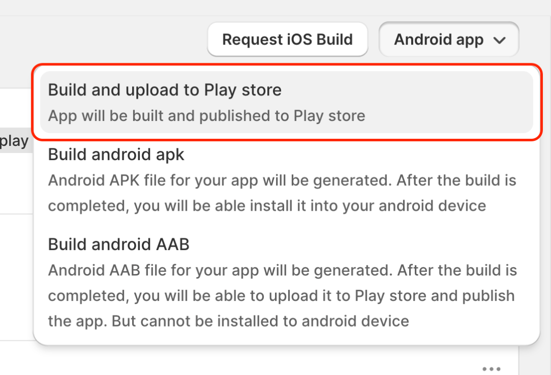 Let's understand what the 'Build and Upload to Play Store' option means for Android apps.